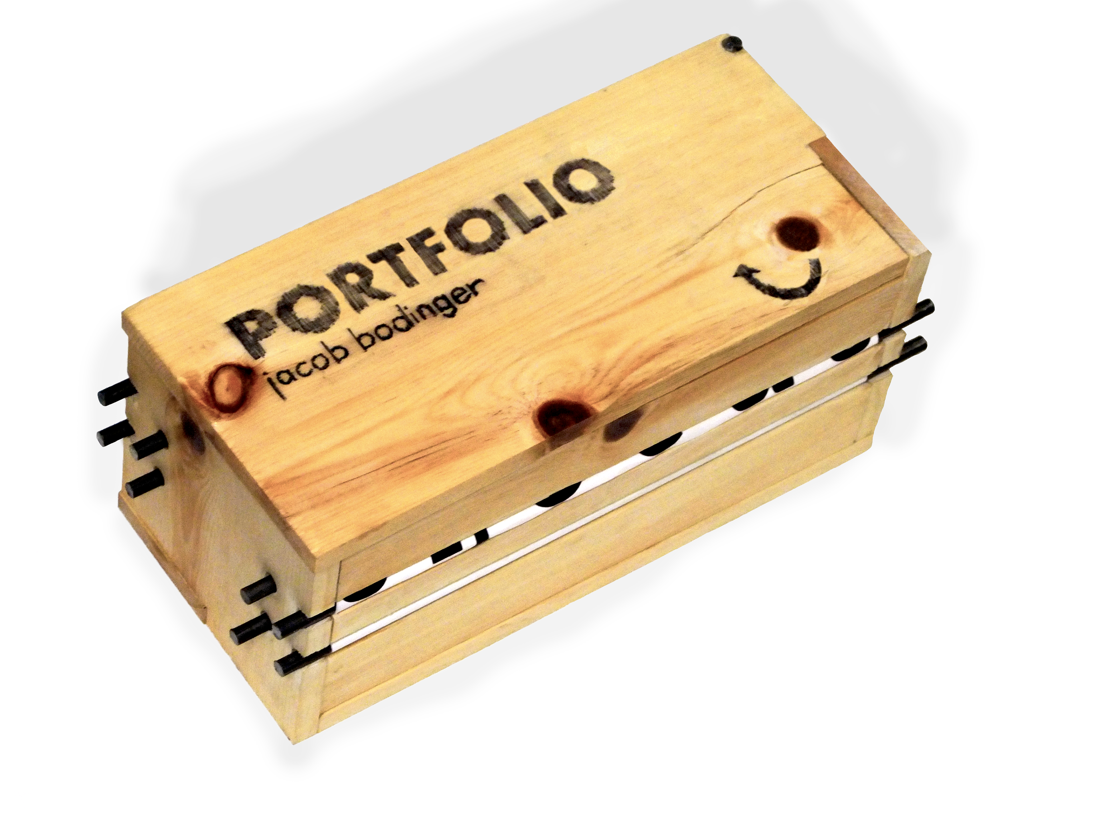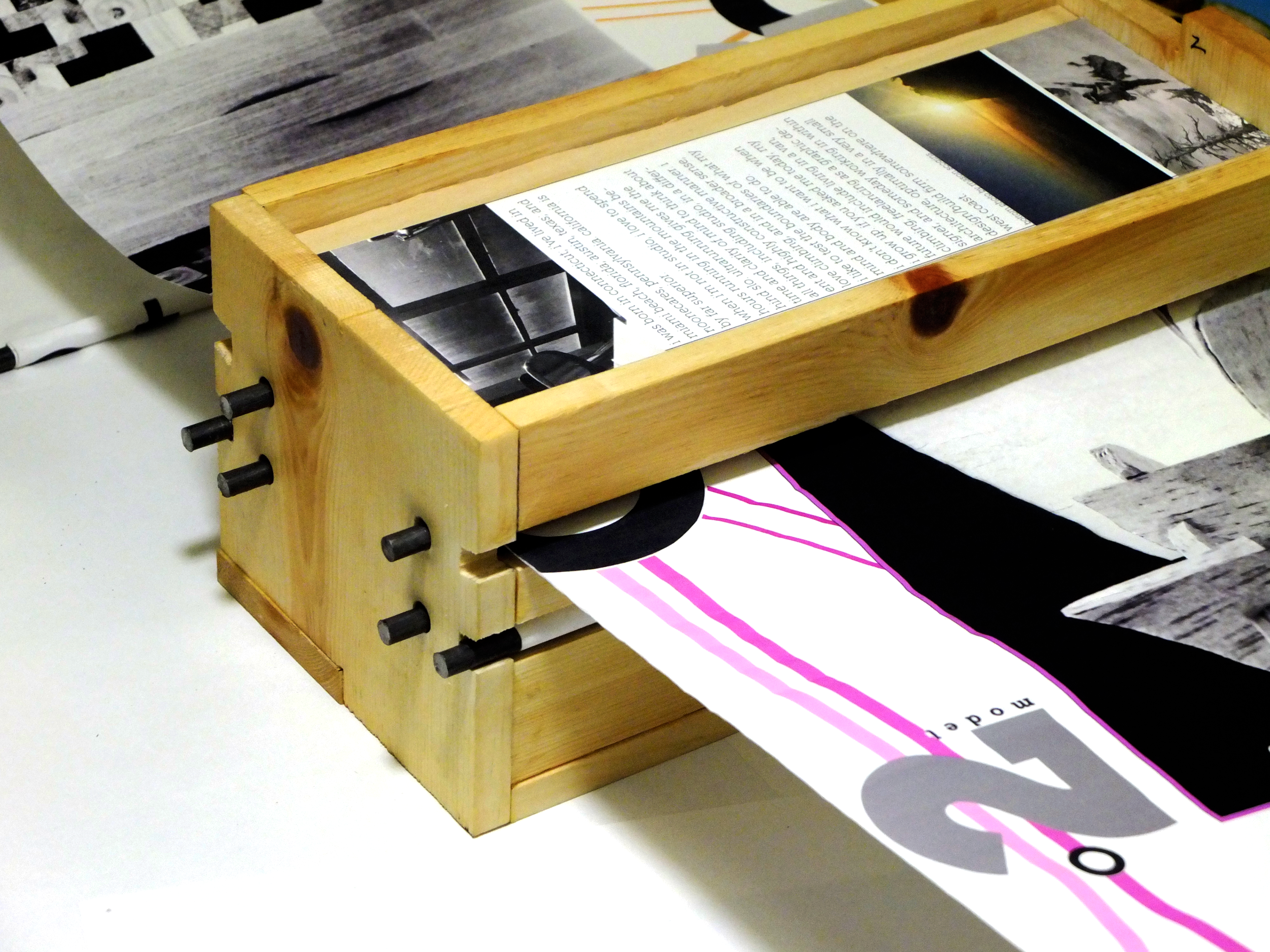 Portfolio for Jermaine Washington's first year studio. Made from wood, steel rods, and scrolls of paper.